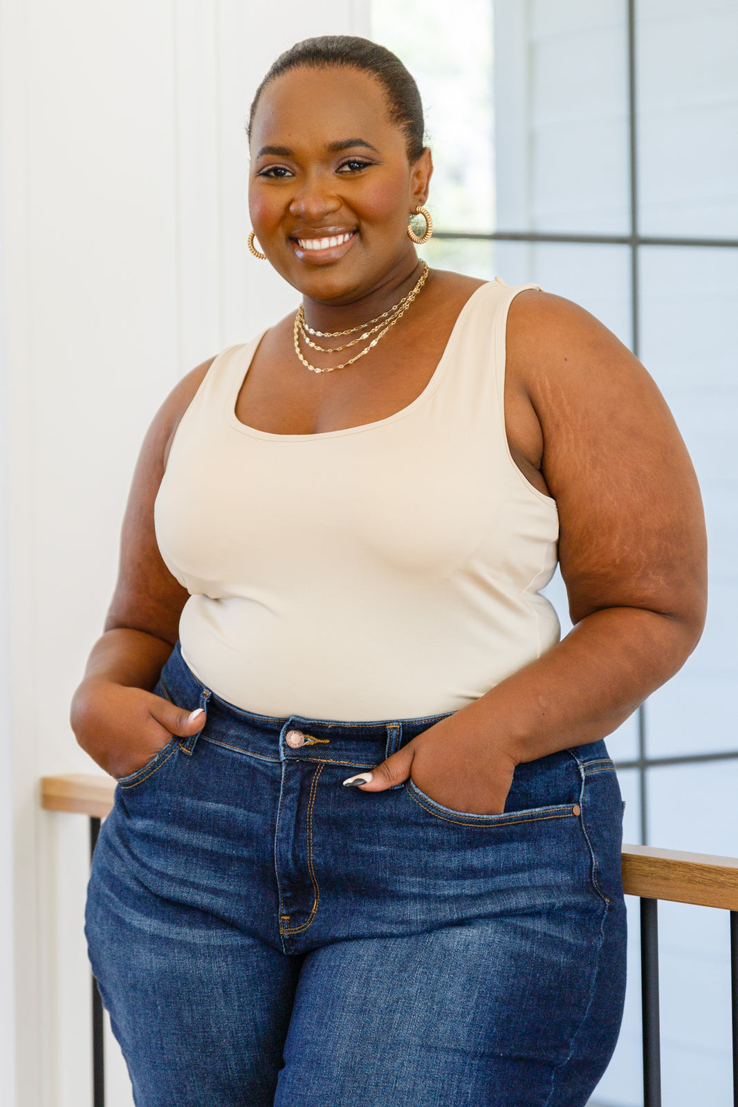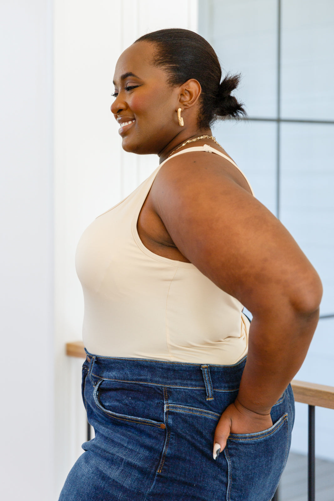 We know there's room in your closet for the Keep Me Around Bodysuit In Beige! This amazing wardrobe essential features a stretchy, lightweight fabric that shapes a scoop neckline with a built in padded bust, that drops into a fitted bodice with a snap closure. This is perfect for layering under your favorite shacket and jeans!