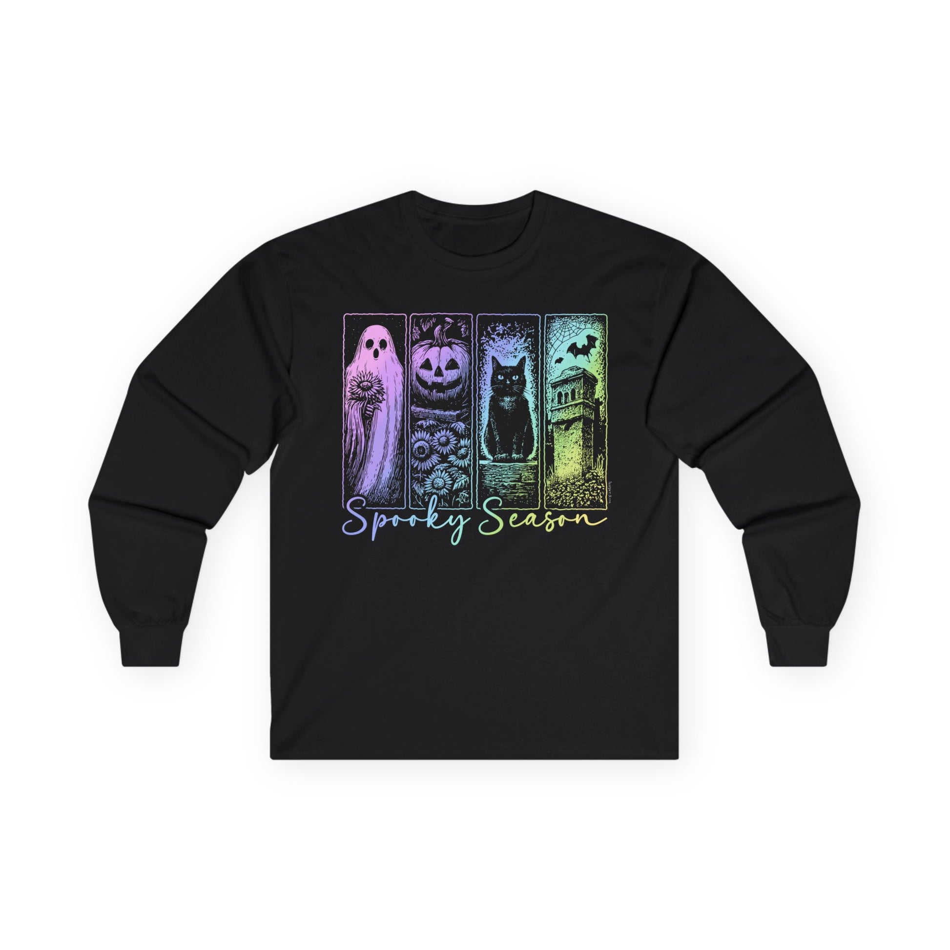 Embrace the spirit of spooky season with this eye-catching Unisex Ultra Cotton Long Sleeve Tee. Its soft, vintage feel is perfect for cozy autumn nights, making it an ideal addition to your seasonal wardrobe. Whether you're attending Halloween parties, decorating your home, or enjoying pumpkin spice lattes, this tee fits seamlessly into any occasion. Designed for adults, it caters to those who love to express their love for all things spooky. Celebrate Halloween in style, or gift it to fellow enthusiasts looking to add a festive flair to their outfits.