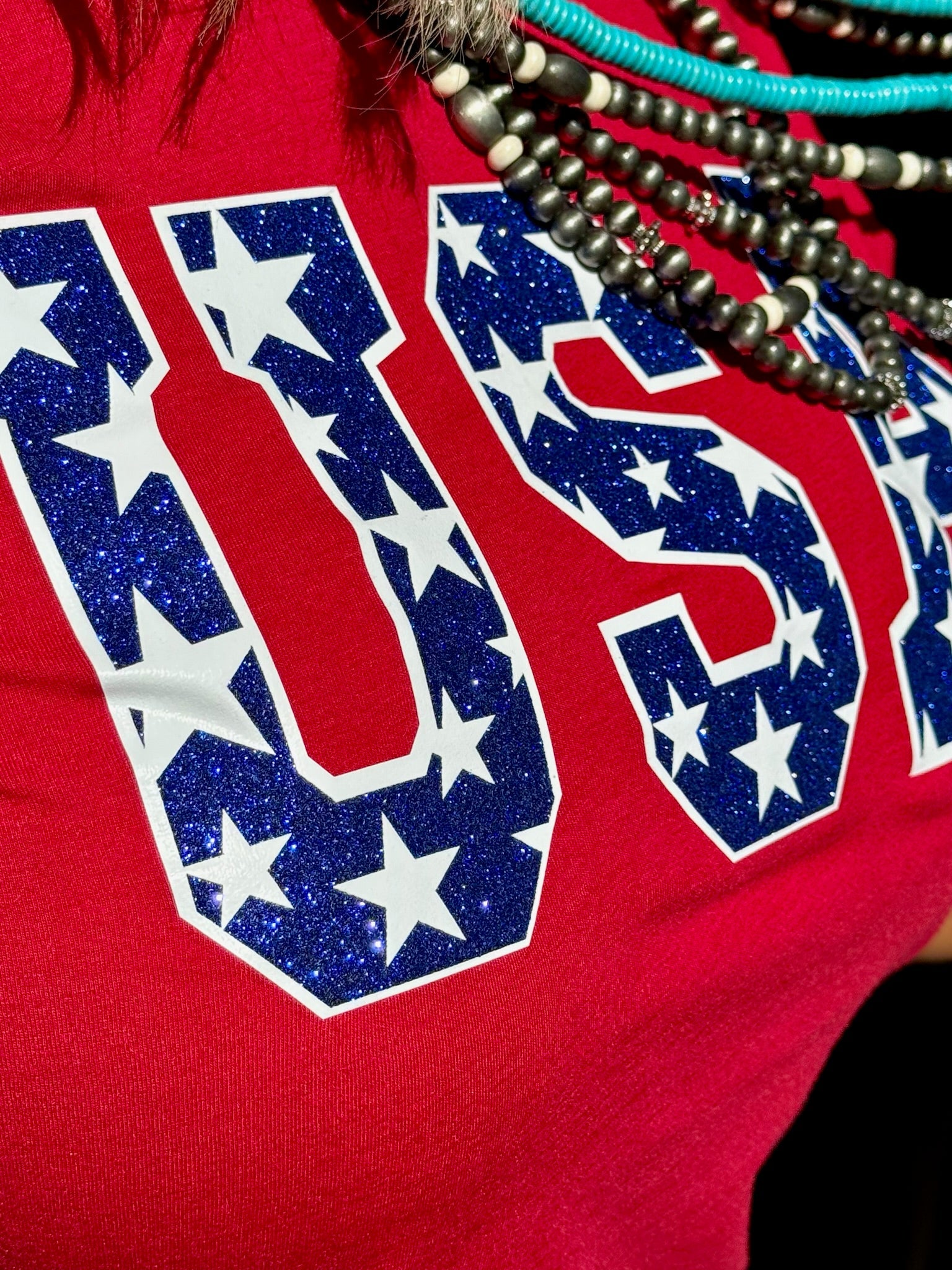 USA Tee & Tank with Stars in Blue Glitter